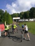 Za chvíli jsme na hranici (velký kámen uprostřed cesty) a vjíždíme do vesničky Furstenau. Po 20 km máme za sebou 2 nejhorší (naštěstí skoro jediná) stoupání a také jednu nepříjemnost ve formě Oldova pádu. Měl jsem to z první ruky a nevypadalo to dobře, ale naštěstí žádná zlomenina ani rozbité kolo, jen odřené koleno a loket + pár děr na oblečení.