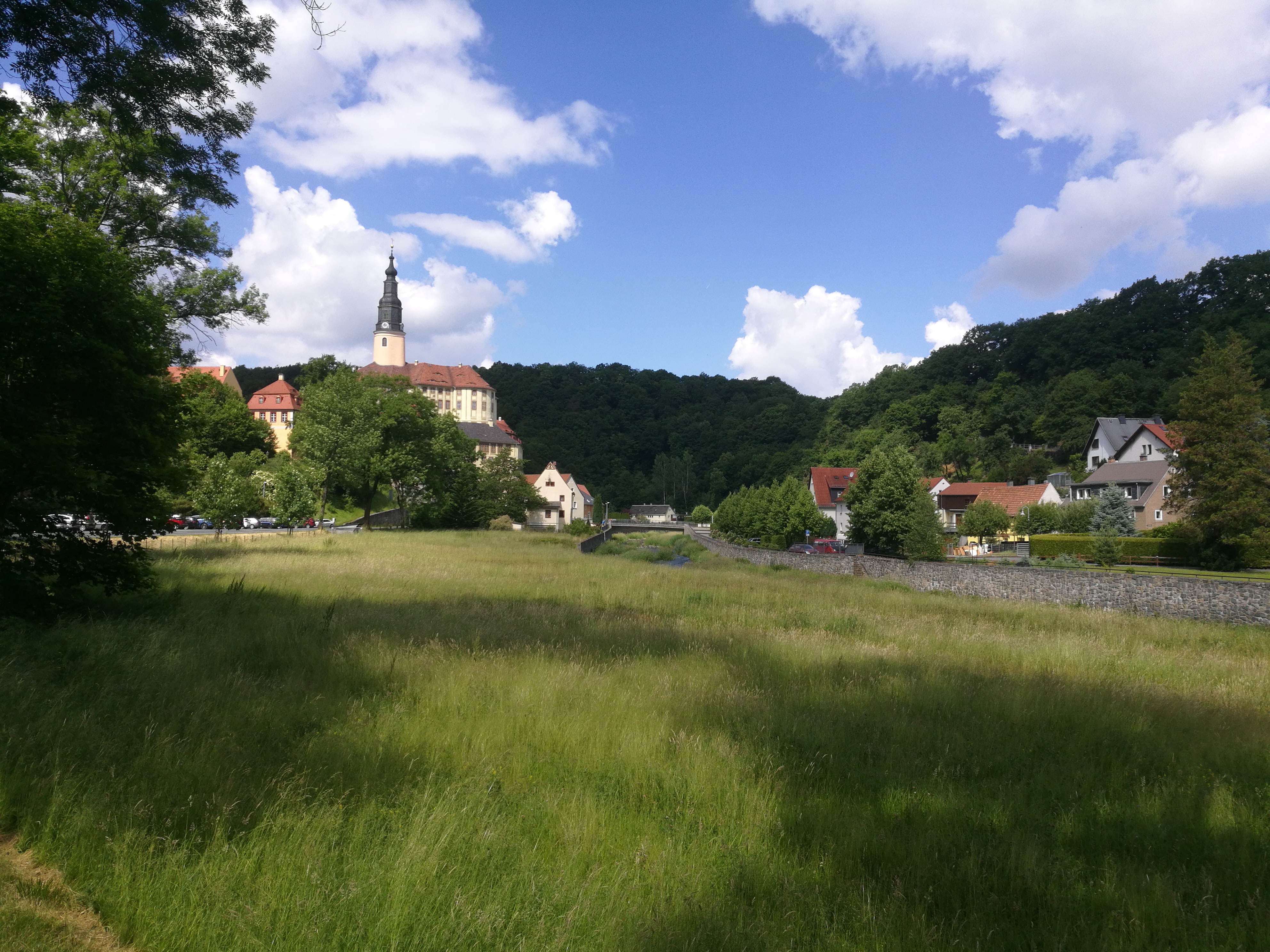 V Burkhardswalde se naše cesty na chvíli rozdělí. Já, Kuba a Petr jedeme dle plánované trasy po polní cestě, protože máme horská kola, zbytek to objíždí po silnici. V Muglitztalu jsme tedy první a já využiji chvilku času na první fotky.