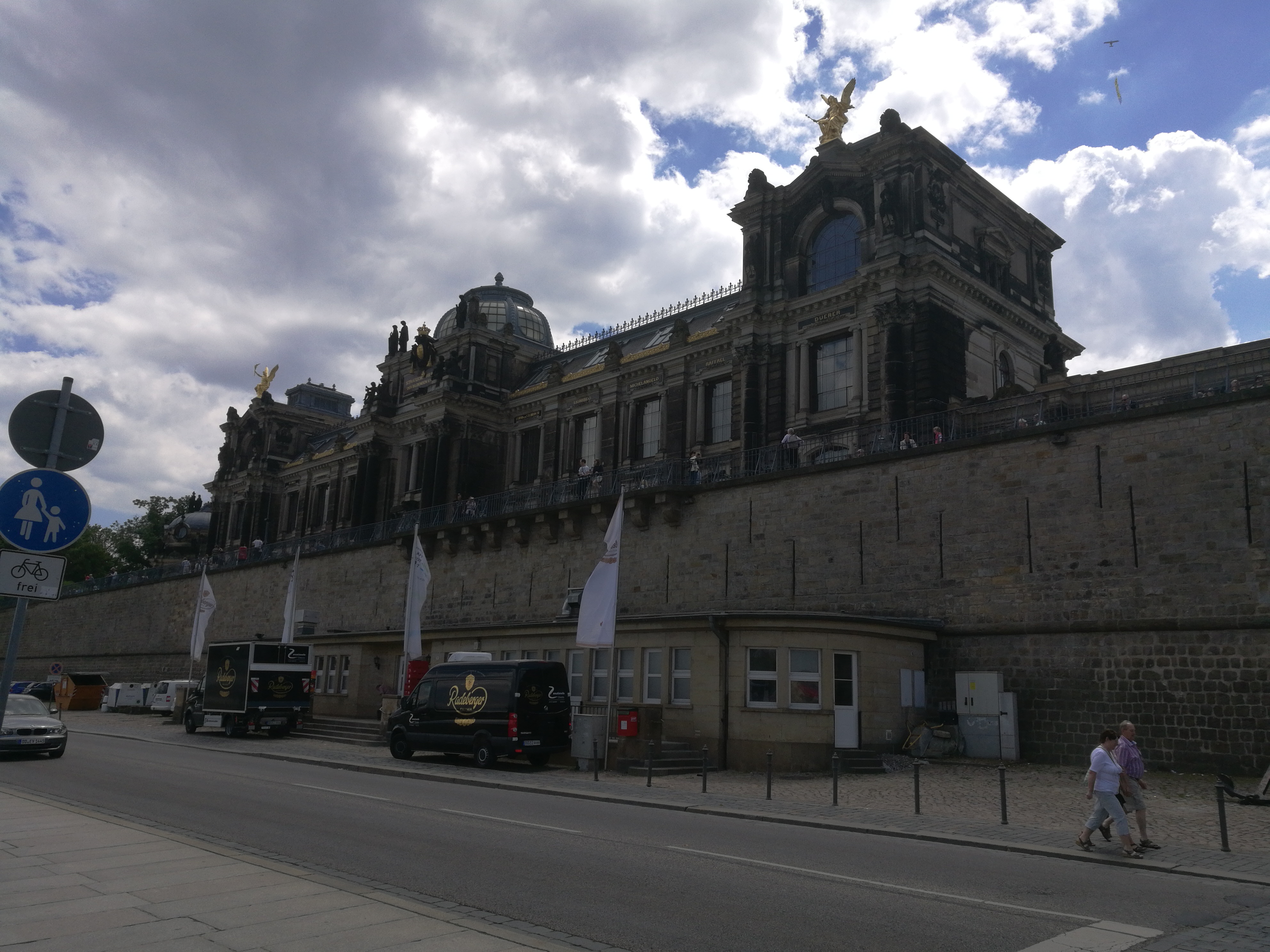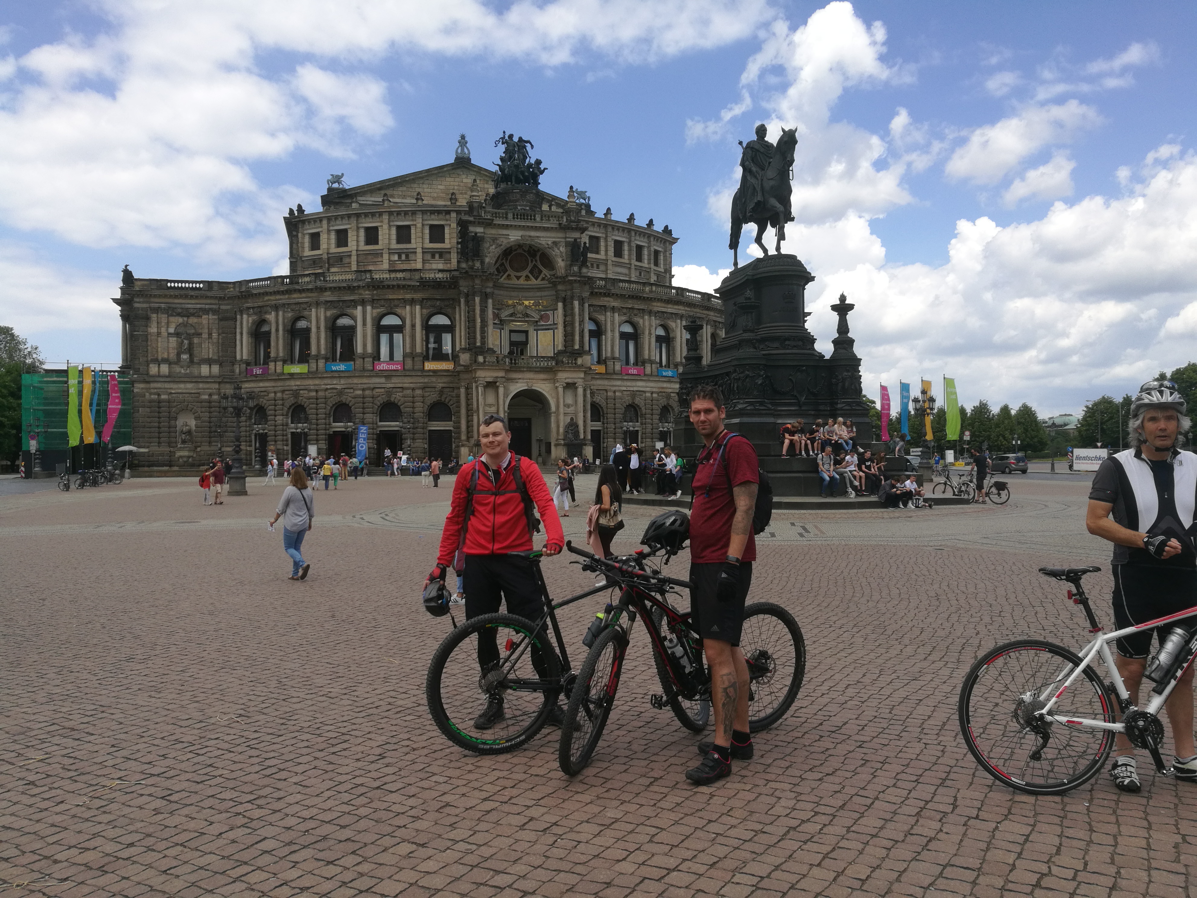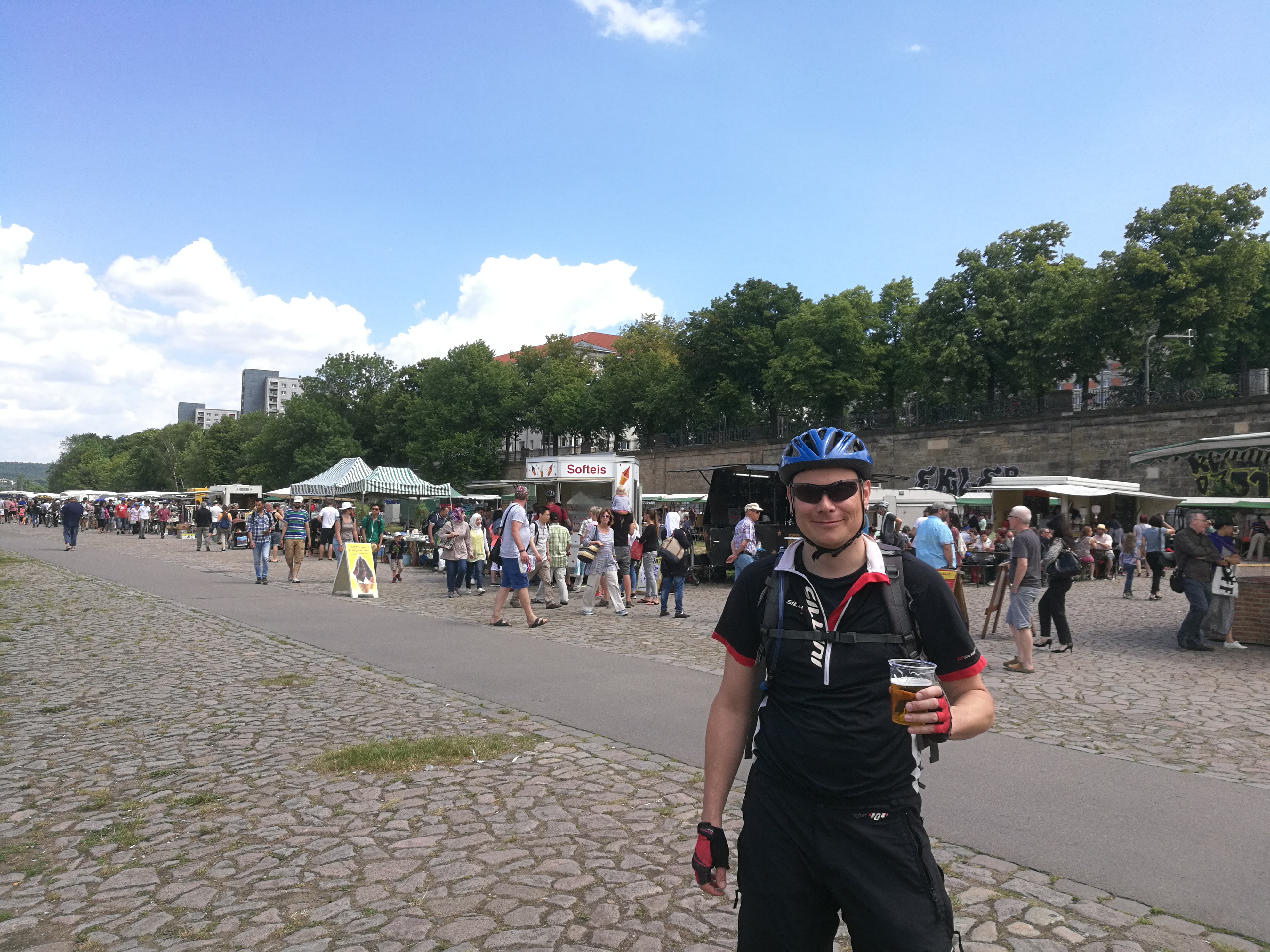 Dále pokračujeme už více méně po rovině, podél vody přes Dohna, Heidenau a nějaká ta předměstí až do Drážďan. Omrkneme pár náměstí, uděláme trochu fotek, dáme si nezbytného wursta a zasloužené pivko. Ještě malá zastávka na blešáku na náplavce, někdo pivo někdo zmrzku (došla než Kuba vystál frontu) a můžeme opustit Drážďany.